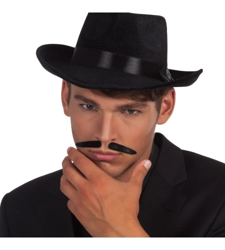 Este nuevo bigote gánster en color negro es ideal para llevarlo cómodamente con tu traje y dificultar que tus amigos y conocidos sepan quien se esconde bajo tu atuendo.