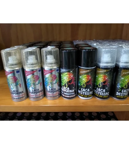 Bote de laca destellos de purpurina para el pelo, se elimina fácilmente con un par de lavados.