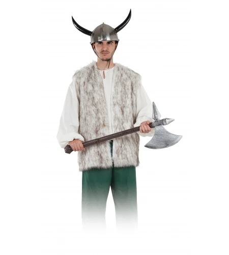 Este abrigado y suave chaleco de pelo claro se encuentra disponible en un solo tamaño para adulto y será el complemento ideal para la fiesta medieval o de temática similar que te espera.