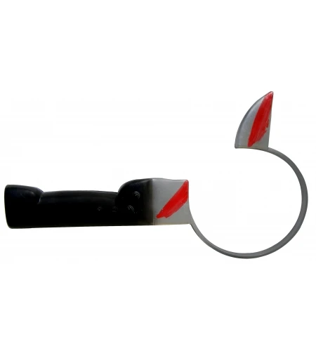 Consta de una diadema que al colocarla sobre la cabeza simula tener un cuchillo atravesado.