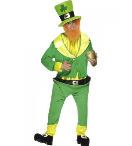 Este completo disfraz de duende verde adulto se encuentra disponible en talla única 52 para hombre y es un original atuendo para llamar la atención de todos tus amigos en tu próxima fiesta de disfraces.