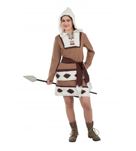 Este original disfraz de esquimal mujer en color marrón se encuentra disponible en diferentes tallas y será un llamativo modelito para lucir en tu fiesta de disfraces.