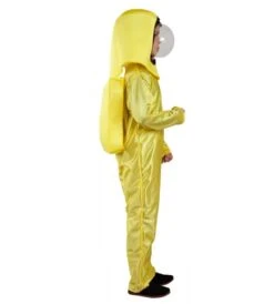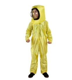 El traje contiene: Mono completo para todo el cuerpo y casco con plástico en la parte frontal.