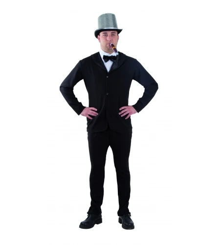 Este simpático disfraz de smoking para adulto se encuentra disponible en una sola talla y es un elegante modelito que cumplirá su función con creces en tu próximo evento al que necesites ir disfrazado.