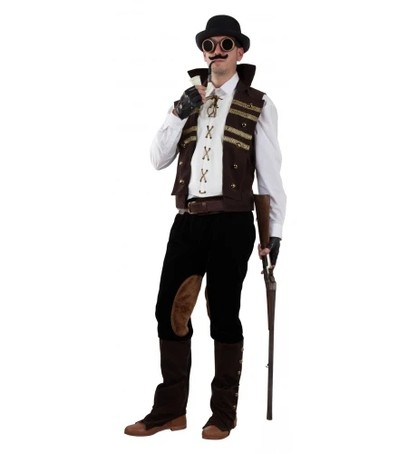 Este completo disfraz de steampunk adulto se encuentra disponible en diferentes tallas.