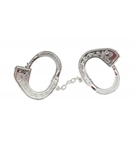 Estas económicas esposas plateadas del oeste contienen un relieve característico de esta época y serán un accesorio perfecto para que las porte el Sheriff.