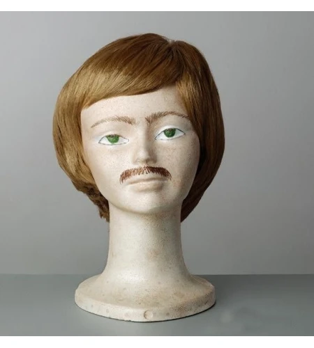 PELUCA DE CHICO CON RAYA AL LADO MELENA CORTA EN COLORES RUBIO CASTAÑO Y NEGRO. FABRICADA CON PELO SINTETICO.