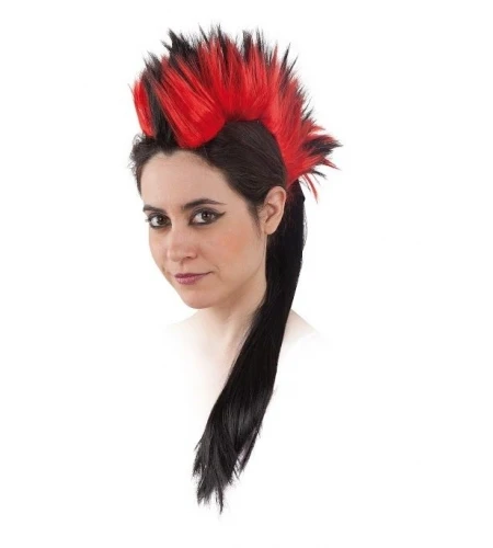 ¡Te presento la peluca cresta con coleta! Un accesorio ideal para combinar con trajes y vestidos de temática gótica, punk y similares.
