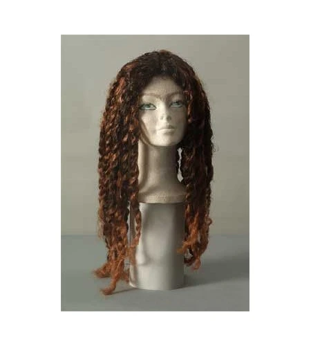 PELUCA RASTAS TRENZADA DE COLOR ROJIZO Y FABRICADA CON PELO SINTETICO.