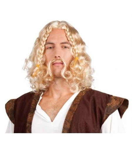 Comprar peluca vikingo rubia con bigote en la tienda de disfraces Comarfi.