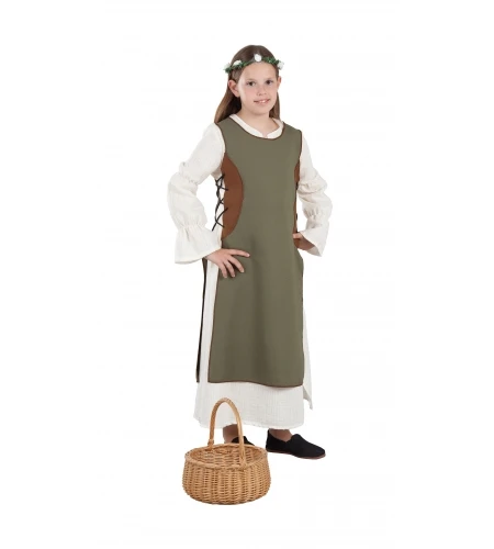 Este nuevo y completo disfraz de campesina infantil está disponible en diferentes tallas en nuestro catálogo y será un distinguido atuendo para la fiesta medieval que te espera.